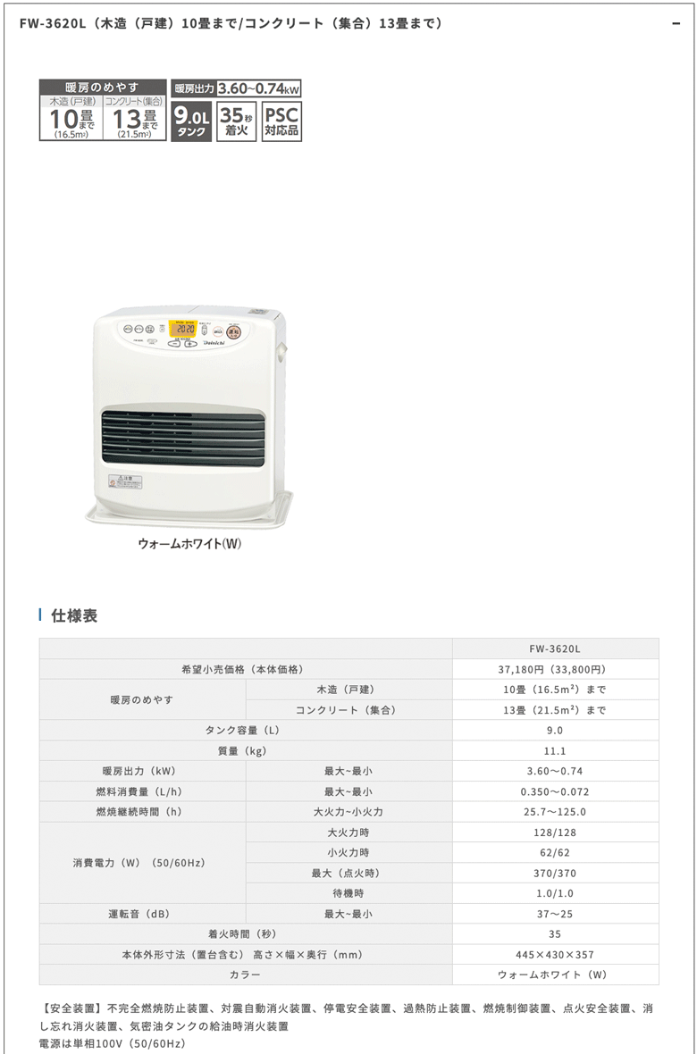 一番大きな9Lタンク エコ機能 室温変化をみる! ecoおまかせモード(一時消火機能あり) 室温変化に合わせて、燃焼量を自動コントロール。